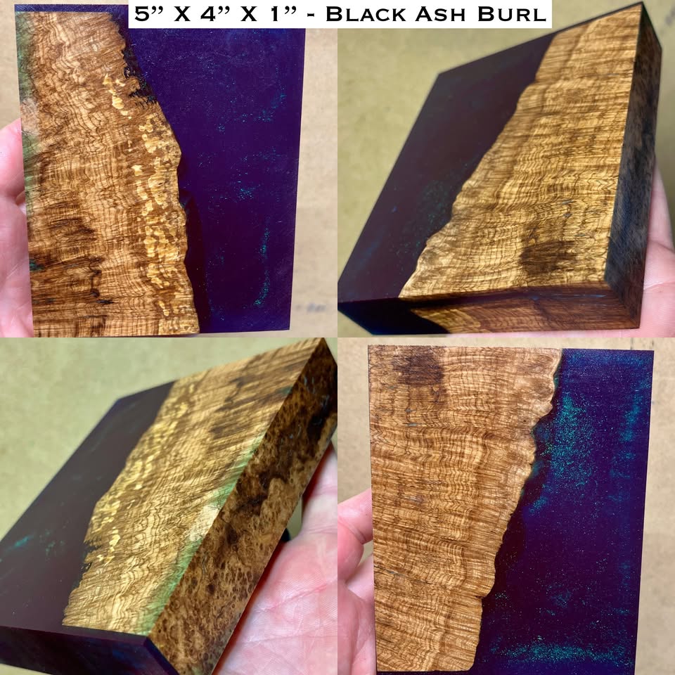 5"x4"x1" Stabilized Black Ash Burl Hybrid Turkey Pot Call / Striker Block. Pressure casted with Alumilite Clear Slow at 80psi for premium results. Shipping for multiple purchases of the same type of blanks automatically combine to save on shipping costs. $150+ of Pot Call Blanks ship for free! 5"x4"x1" minimum. Lightly oiled to show color & figure.