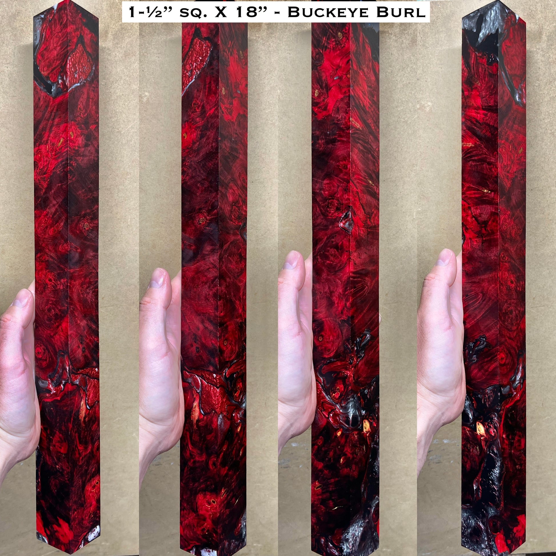 Stabilized Buckeye Burl 18” Hybrid XL Call / Cue Block. Photos show all sides. Cast with Alumilite Clear Slow 1-1/2” square by 18” long. Lightly oiled to show color/figure.